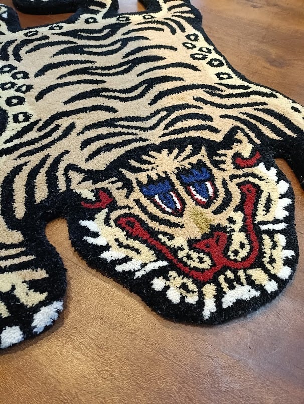 インテリアとしての魅力はもちろん、リビングや寝室に置くだけで雰囲気を一新することができるため、実用性にも優れています。遊び心満載のタイガー柄が、日常にちょっとした冒険感をプラスしてくれます!おしゃれなだけでなく、心を和ませる空間を提供するチベタンタイガーラグをぜひお試しください。