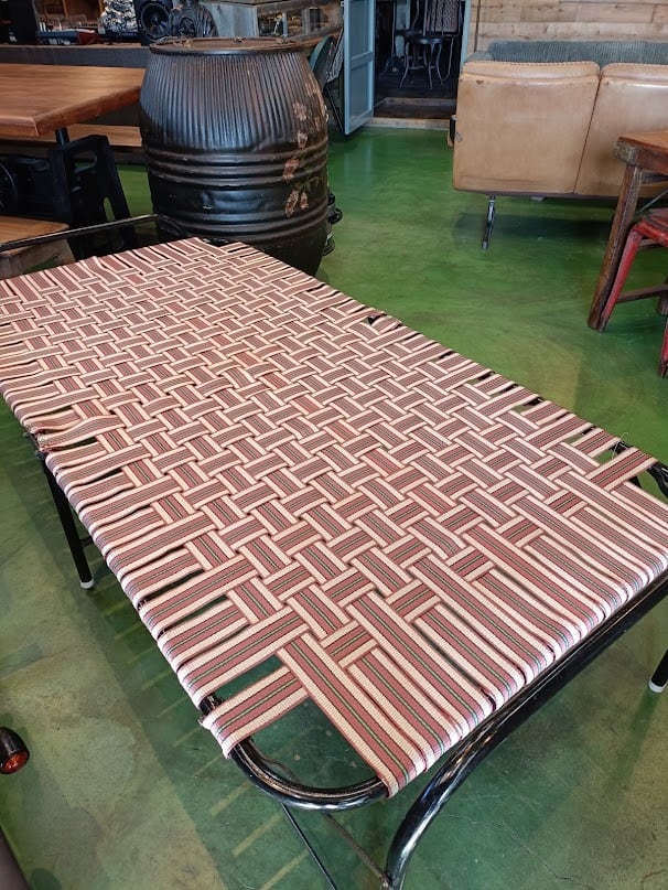 インディアンフォールディングカティアベッドは、伝統的なデザインと機能性を兼ね備えた美しいベッドです。サイズは90㎝×180㎝で、コンパクトながらも快適にお休みいただける空間を提供します。グリーンとレッドの鮮やかなカラーリングが、お部屋に元気なアクセントを加えます。