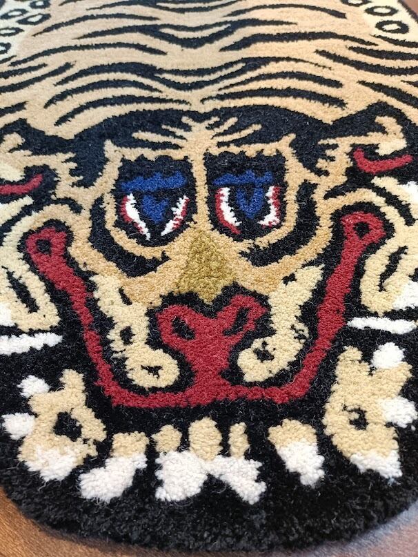 インテリアとしての魅力はもちろん、リビングや寝室に置くだけで雰囲気を一新することができるため、実用性にも優れています。遊び心満載のタイガー柄が、日常にちょっとした冒険感をプラスしてくれます!おしゃれなだけでなく、心を和ませる空間を提供するチベタンタイガーラグをぜひお試しください。
