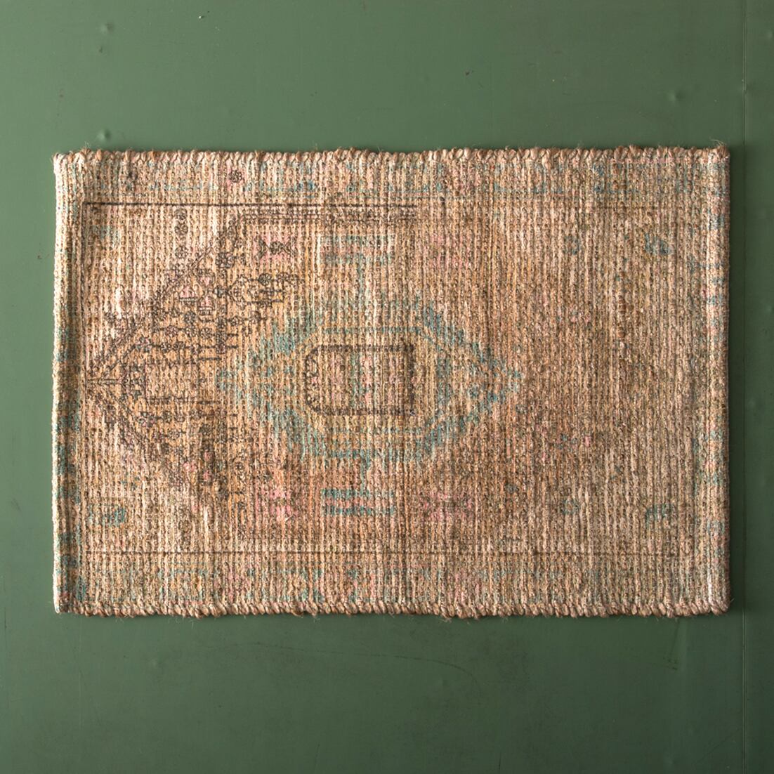 ジュートとポリエステル素材を融合させたラグ。デジタルプリントを施したアンティーク調のデザイン。