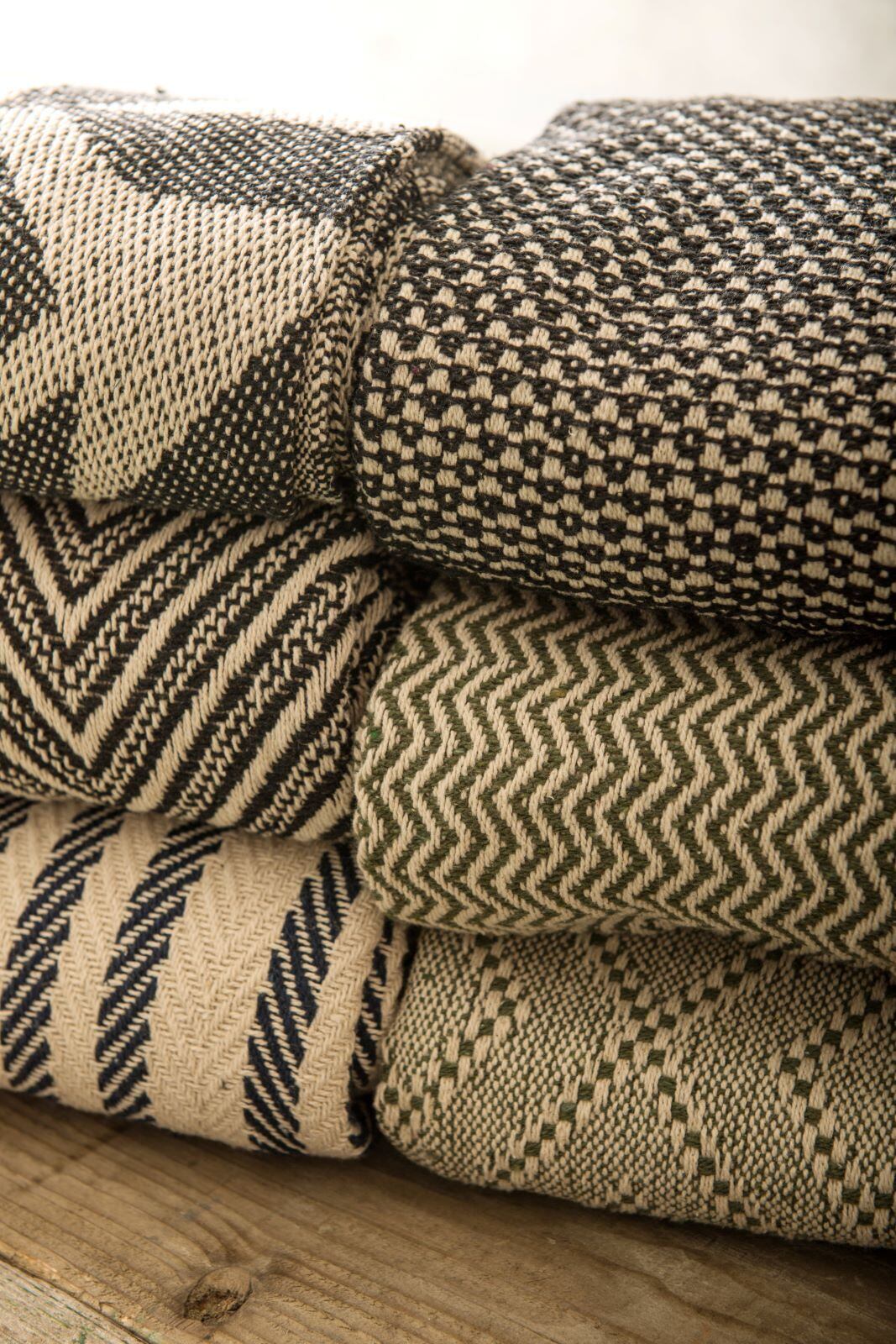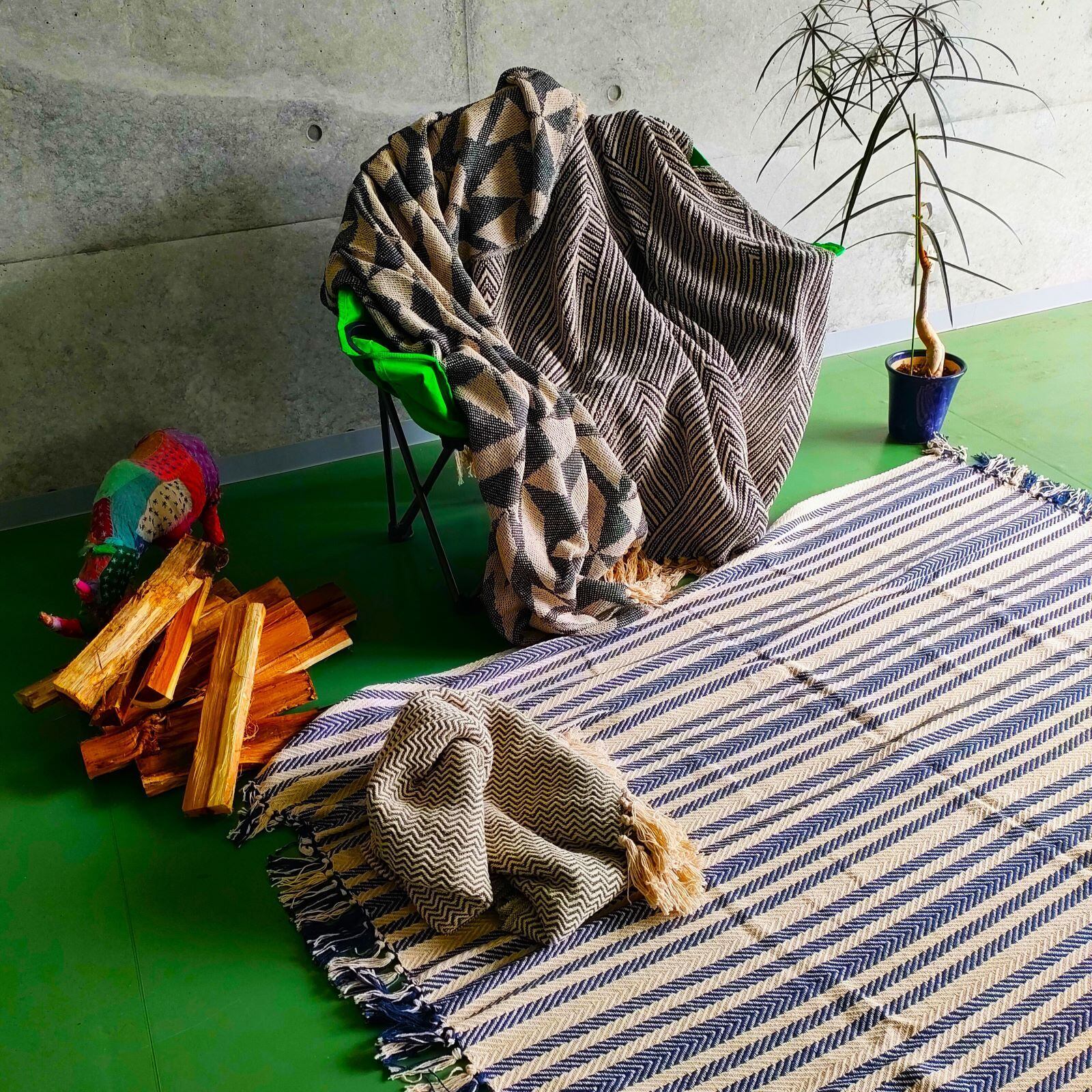 インドの縫製工場で破棄される糸を100%再利用した多機能カバー。発色性のある糸は使用できない故のシックなダルカラーで揃えたシリーズ。