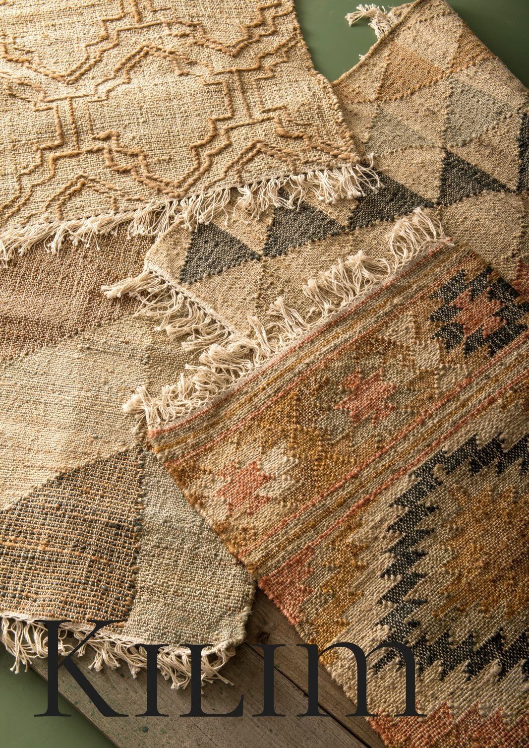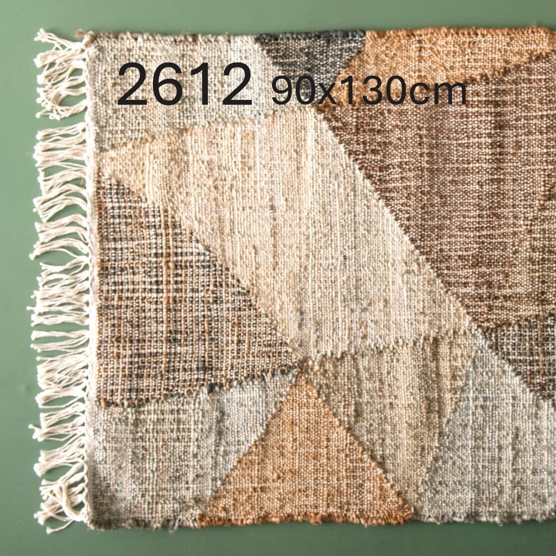 ジュートとコットンを使用したインドキリムラグ。ジュートの通気性とコットンの柔らかさが融合した幾何学模様やトライバルデザインは室内外でご使用いただけます。