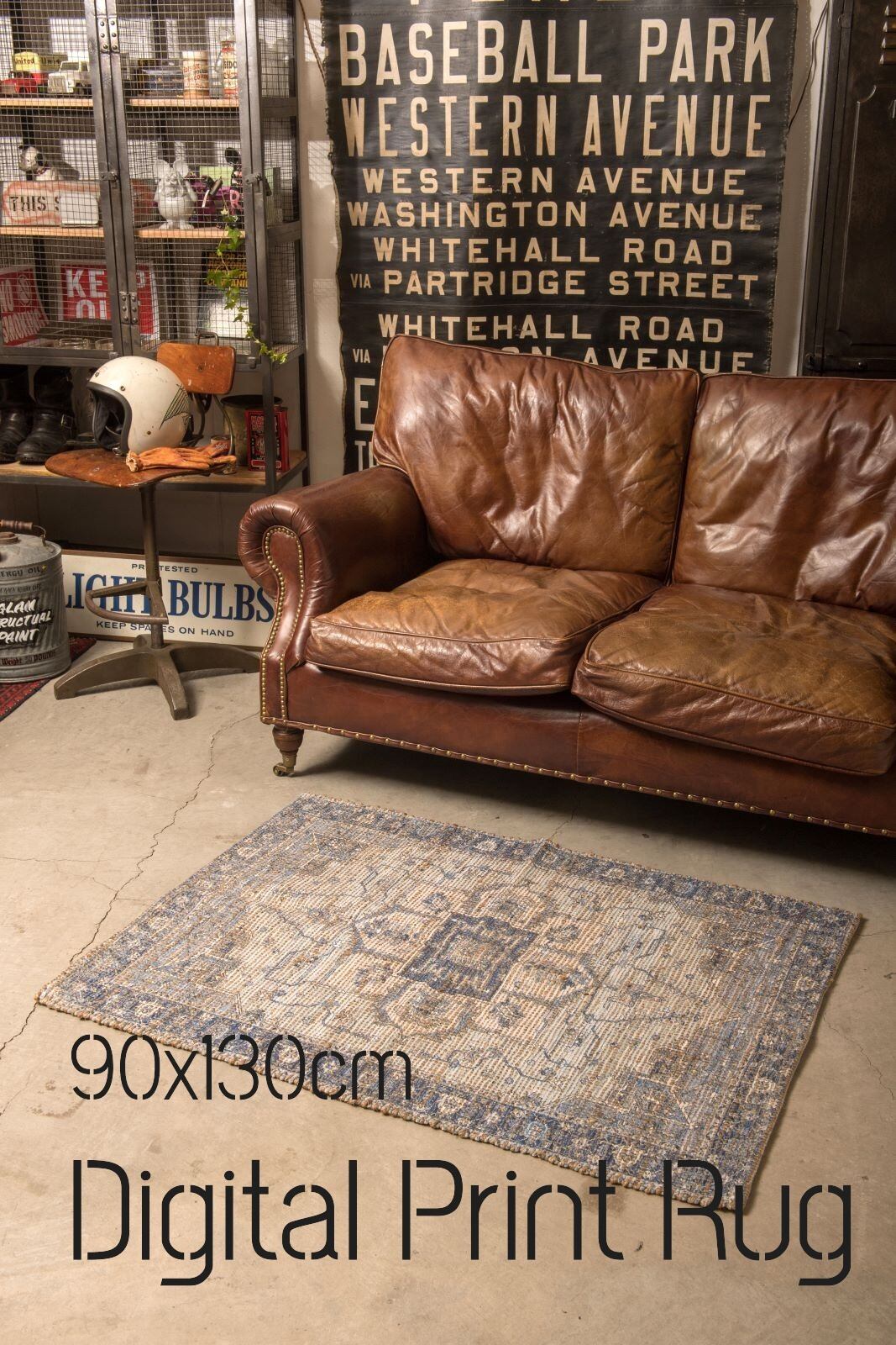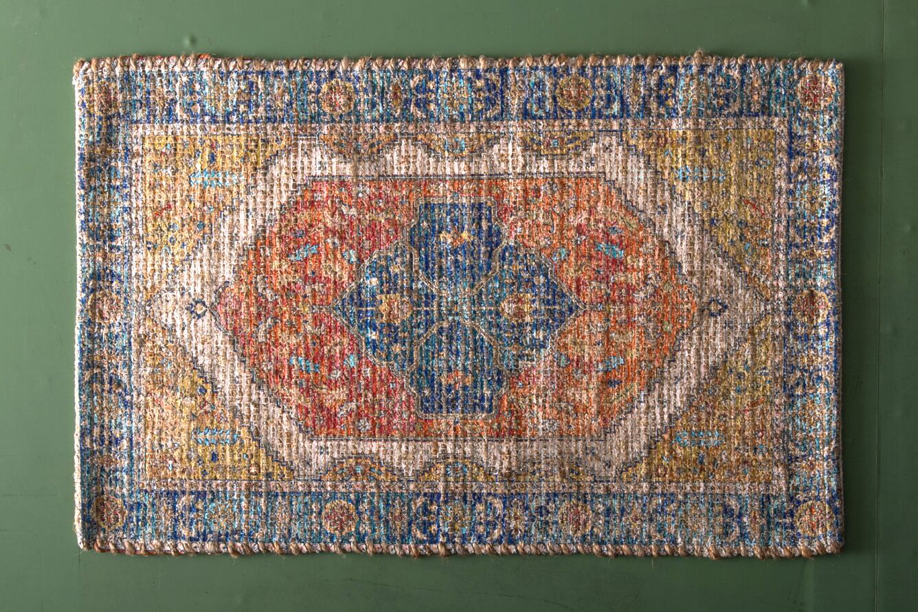 ジュートとポリエステル素材を融合させたラグ。デジタルプリントを施したアンティーク調のデザイン。